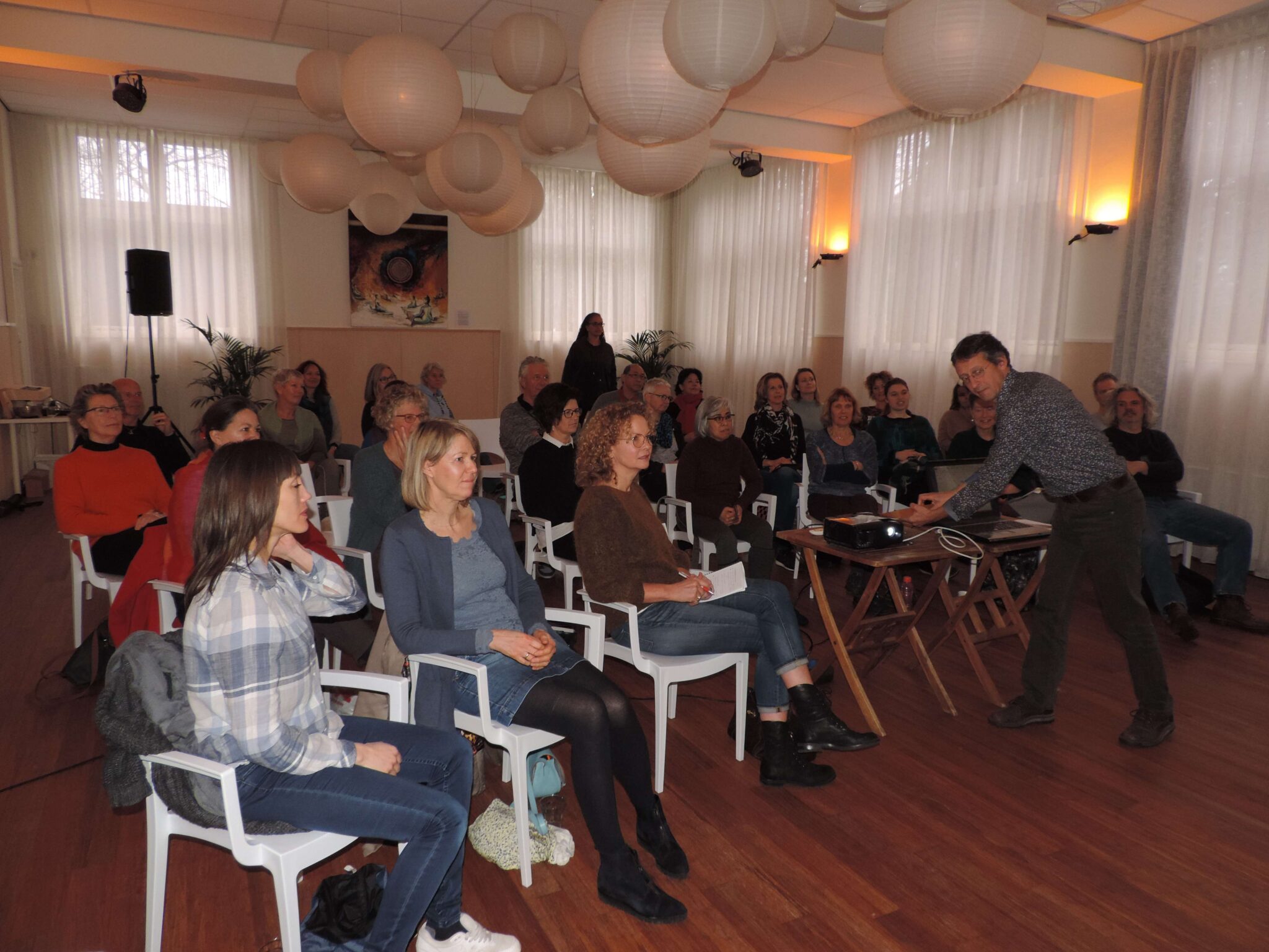 De uitslag van het onderzoek werd door Harry helder gepresenteerd en met veel lof ontvangen. Onderwerpen waren: Wat is er nodig, waar liggen de behoeftes van de instructeurs, wat kunnen we verbeteren en hoe worden verschillende prodcuten en diensten beoordeeld. En hoe kunnen we nog meer verbinden. Want dat was een feit: iedereen wil met elkaar verbonden blijven en de wens is dat vanuit het Chi Neng Instituut de faciliterende rol opgepakt wordt. Daar zijn wij bij het instituut blij mee en dat doen we graag!